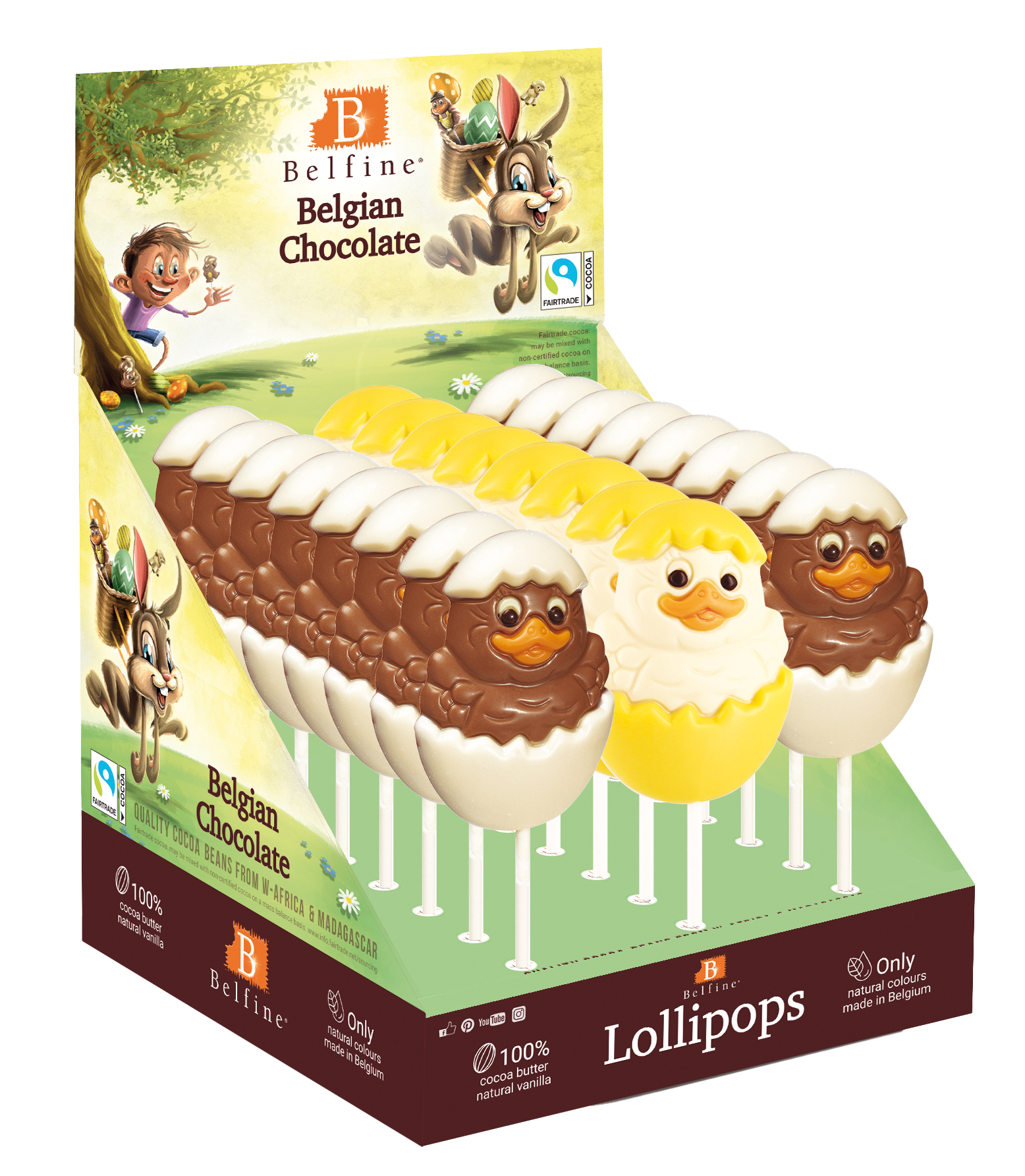 använder för att framhäva mönster och karaktärer hos sina figurer. Självklart tar Belfine också ett socialt ansvar när det kommer till hållbar odling av kakaobönor samt utbildning och stöd till kakaobönderna och deras familjer. Därför är också Belfines chokladfigurer rättvisemärkta.